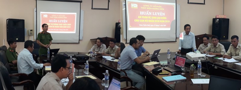 Từ ngày 20/5/2019 đến 23/5/2019, Công ty cổ phần thủy điện Hương Điền phối hợp với Trường Cao đẳng Điện lực Miền Trung và phòng Cảnh sát PCCC&CHCN – Công an tỉnh Thừa Thiên Huế tổ chức lớp huấn luyện định kỳ hàng năm về công tác ATVSLĐ và PCCC năm 2019 cho Lãnh đạo và cán bộ nhân viên Công ty tại nơi sản xuất là Nhà máy thủy điện Hương Điền.